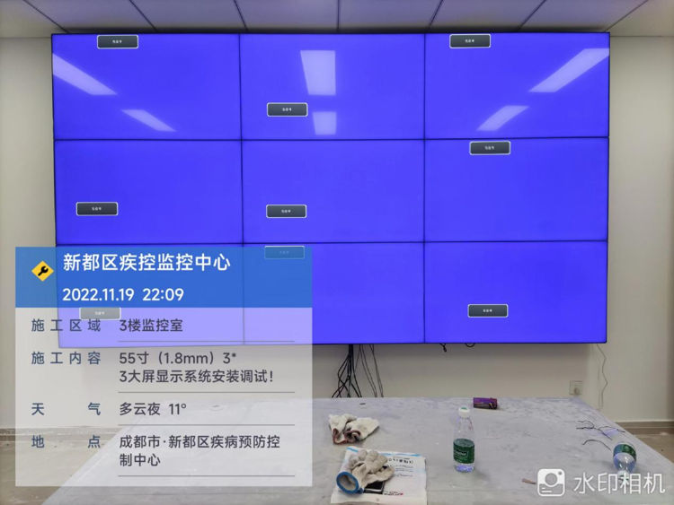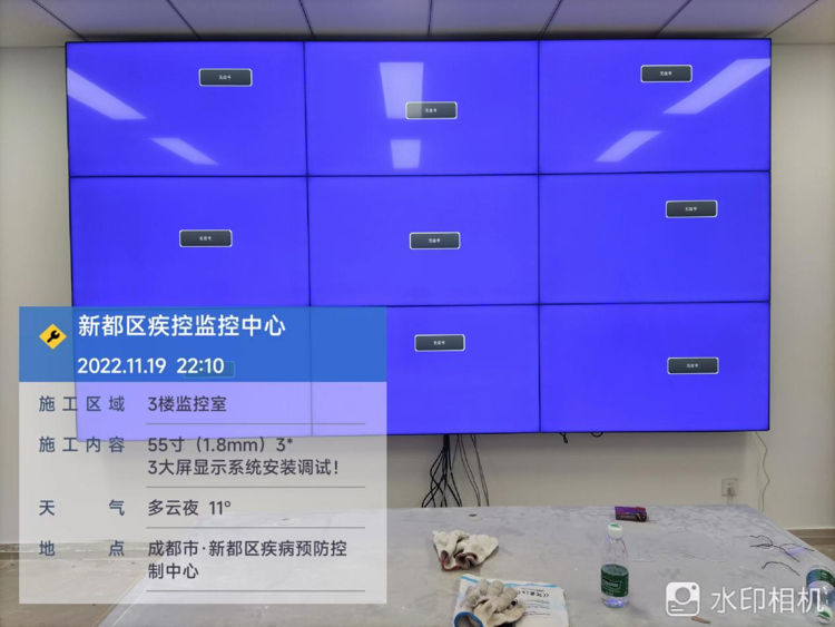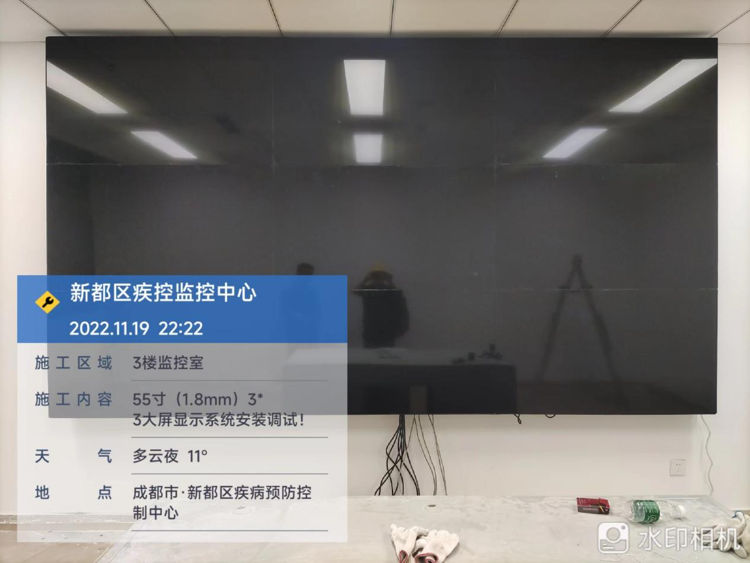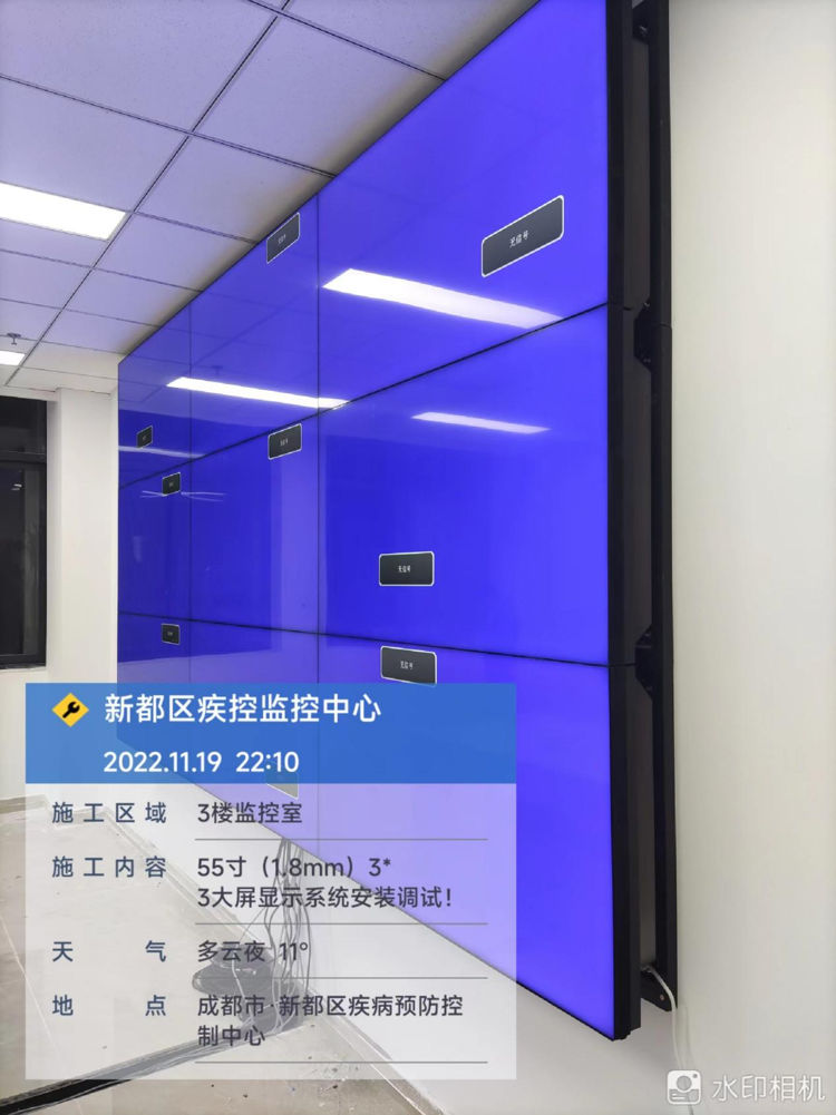 新都区疾控中心监控系统55寸1.8mm3x3电视墙完成第一阶段安装