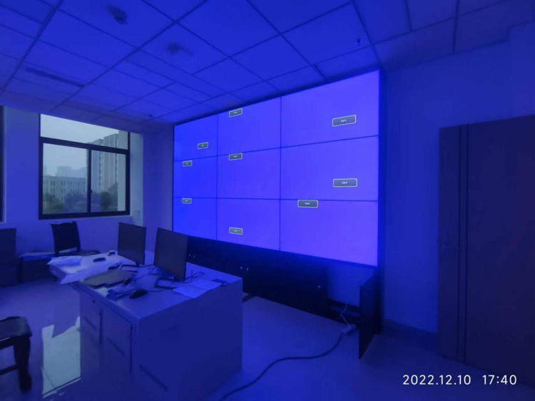 新都区疾控中心监控系统55寸1.8mm3x3电视墙完成封边安装调试