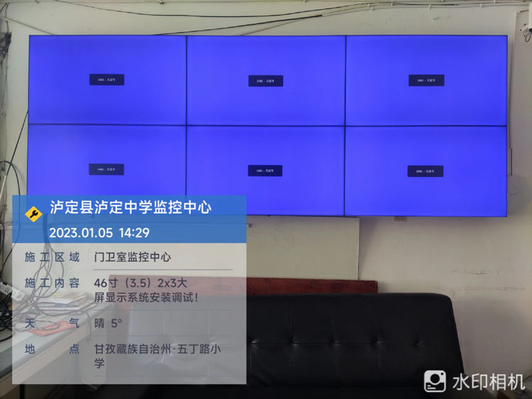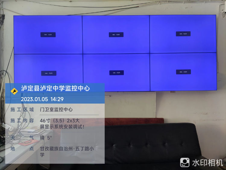 四川泸定中学监控中心固定壁挂式46寸2X3大屏系统安装调试完成