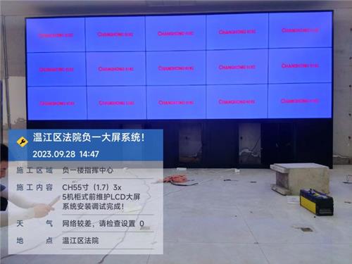 温江区人民法院负一楼会议室55寸(1.7)3x5机柜式前维护大屏系统安装调试完成