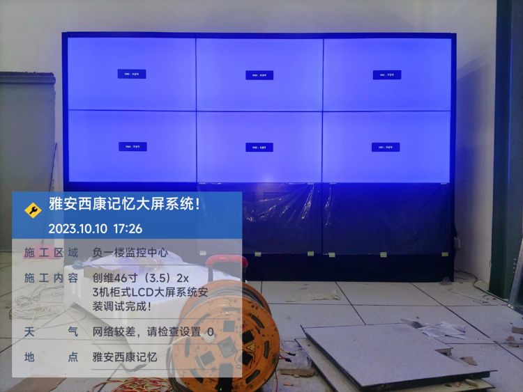 雅安西康记忆监控中心46寸2x3后维护电视墙大屏系统安装调试完成