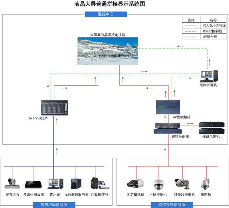 液晶大屏普通拼接方案示意图