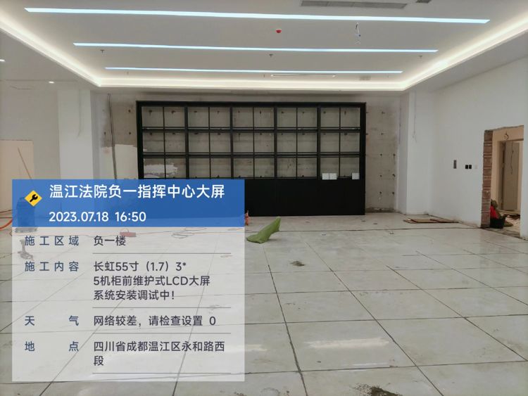 温江区法院负一楼55寸(1.7m㎜)3x5前维护电视墙安装完成