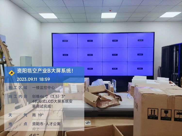 资阳临空产业园B区一楼监控中心46寸3x4电视墙己安装调试好