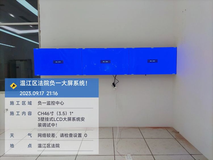 温江区人民法院负一楼监控室46寸(3.5)1x3大屏系统安装调试完成
