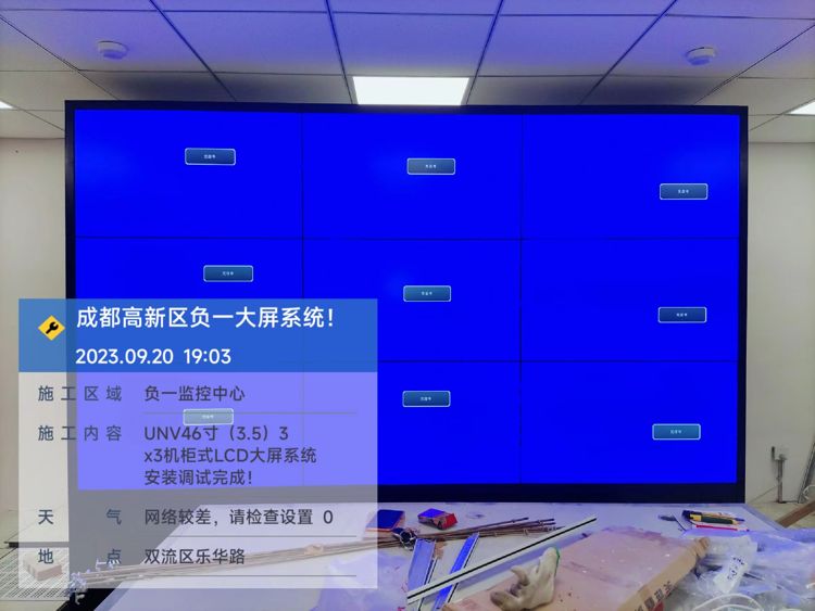 成都市高新区负一楼46寸3x3机柜式后维护电视墙安装调试完成