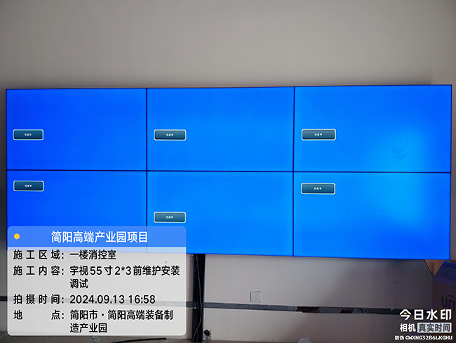 简阳高端产业园区项目宇视55寸2*3前维护大屏安装调试完成
